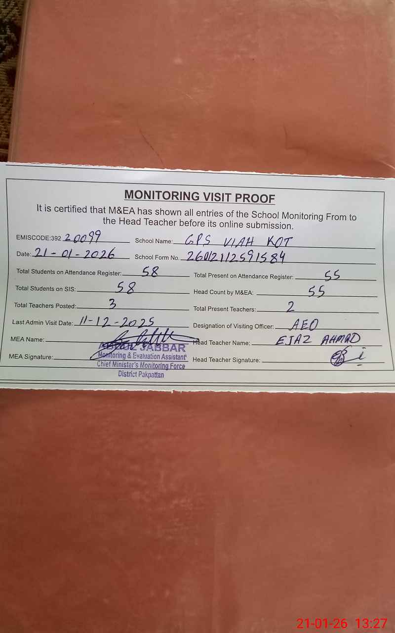 | EMIS Code: 39220099 | Name of School: GPS VIAH KOT | |||