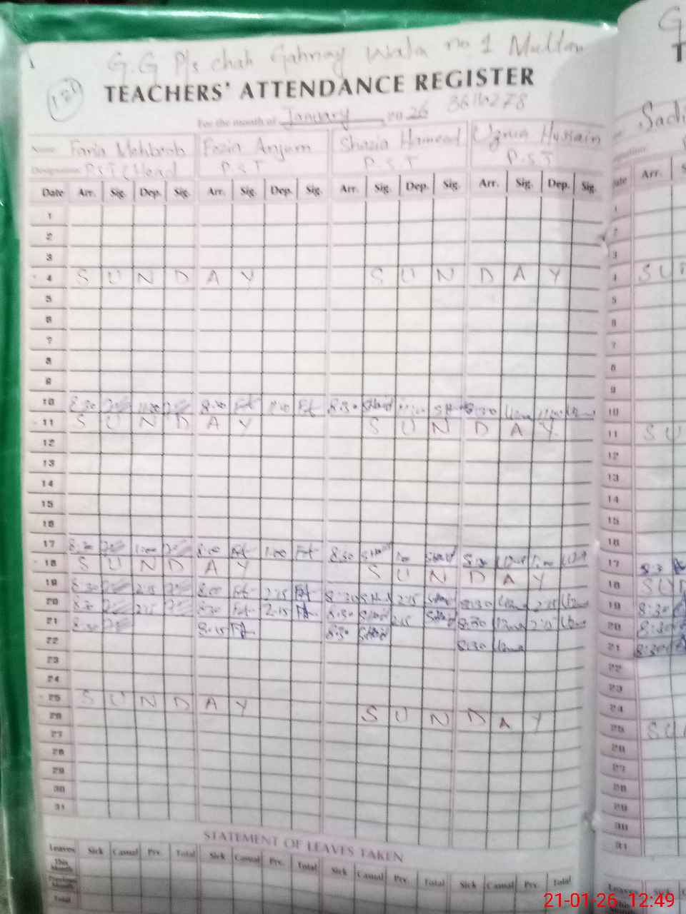 | Name: Fa**** Me**** Designation: (School Headmaster's/Headmistress's) HEADMISTRESS, Phone/Cell Number: 03**** |