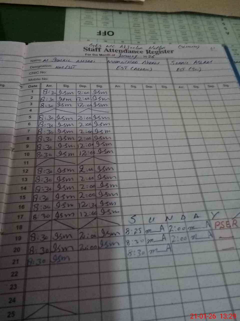 | Name: IS**** AN**** Designation: (School Headmaster's/Headmistress's) sst Phone/Cell Number: 03**** |