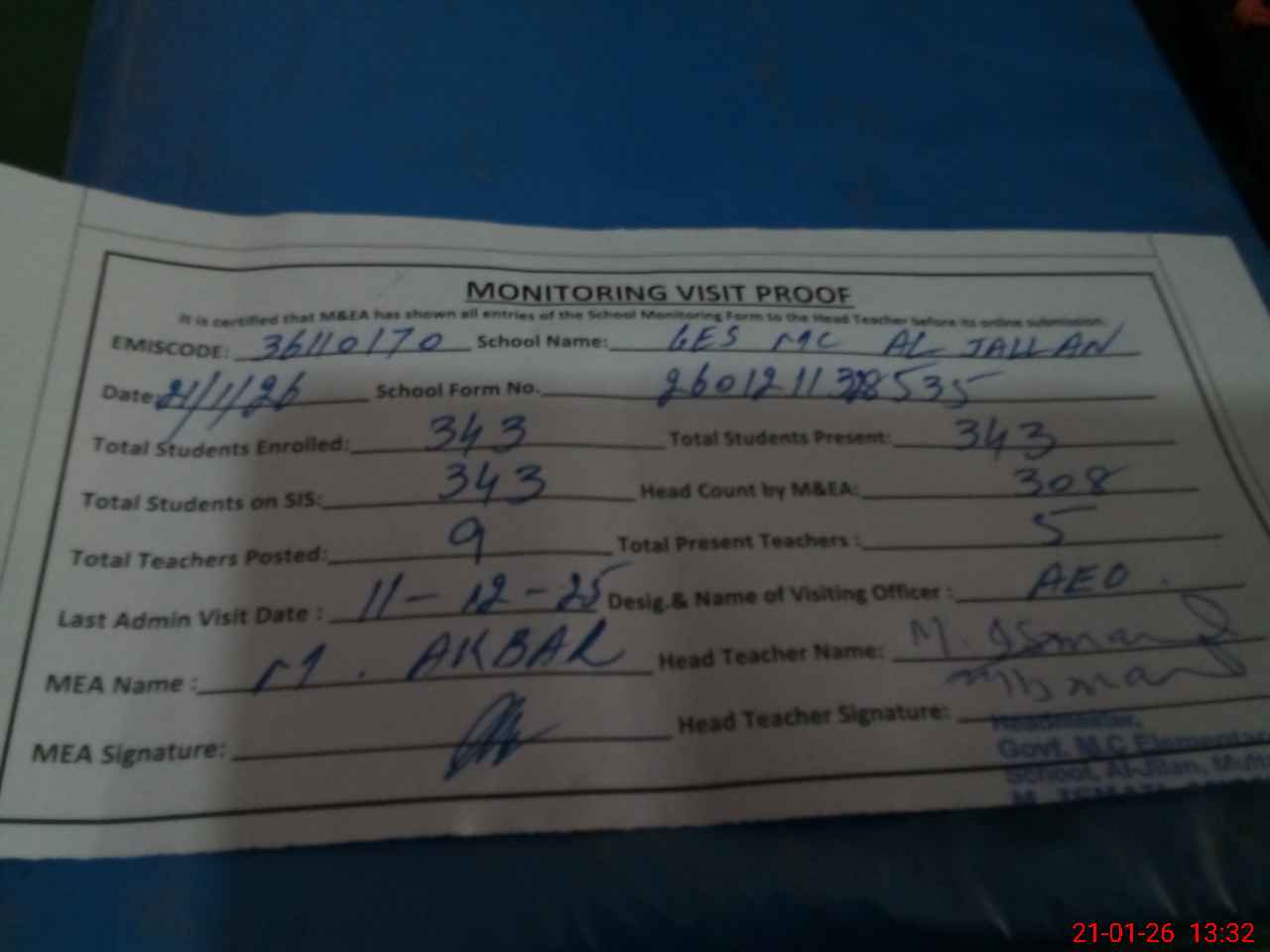 | EMIS Code: 36110170 | Name of School: GES MC AL-JEELLAN WALA MULTAN | |||