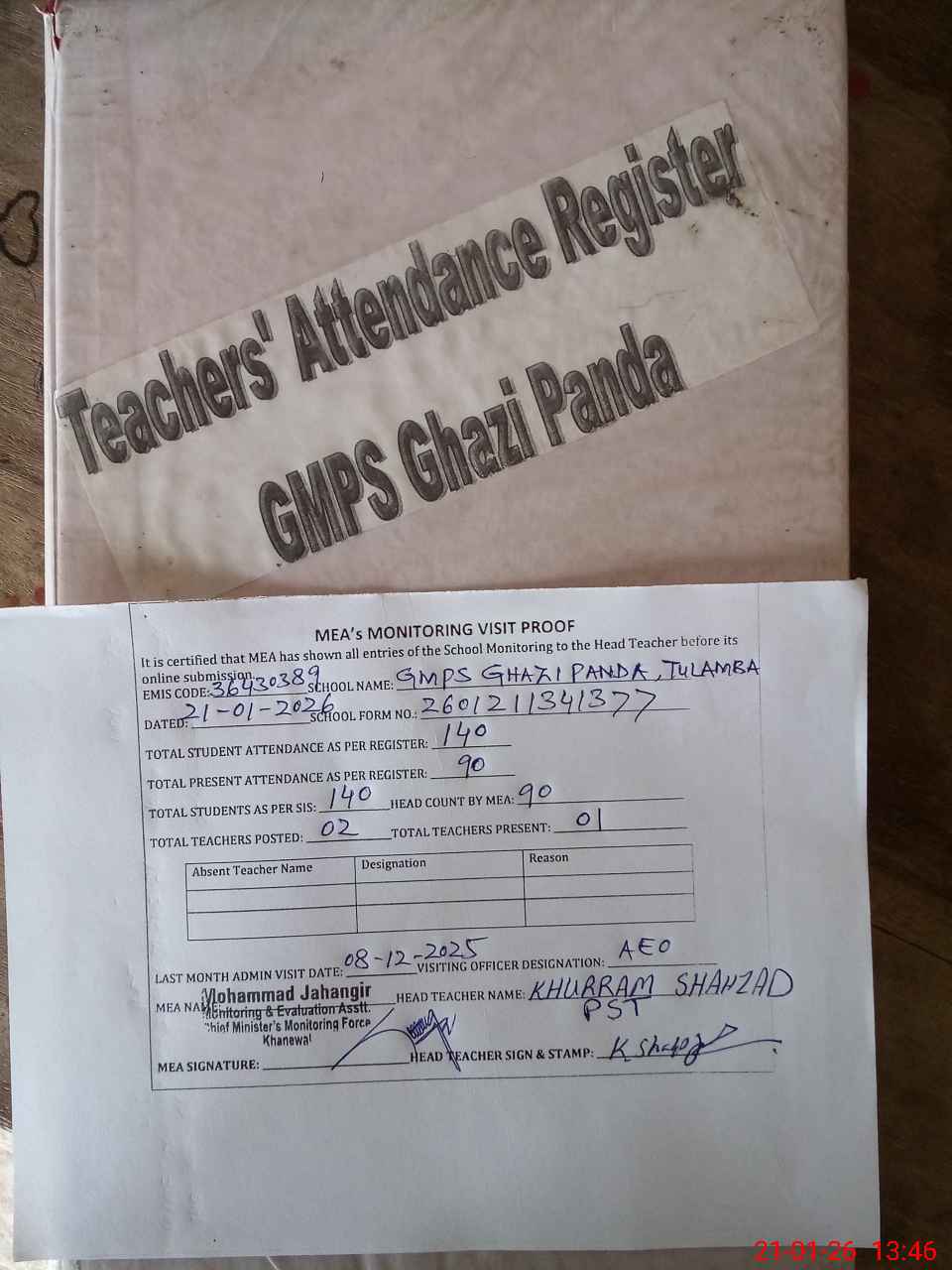 | EMIS Code: 36430389 | Name of School: GMPS GHAZI PANDA, TULAMBA | |||