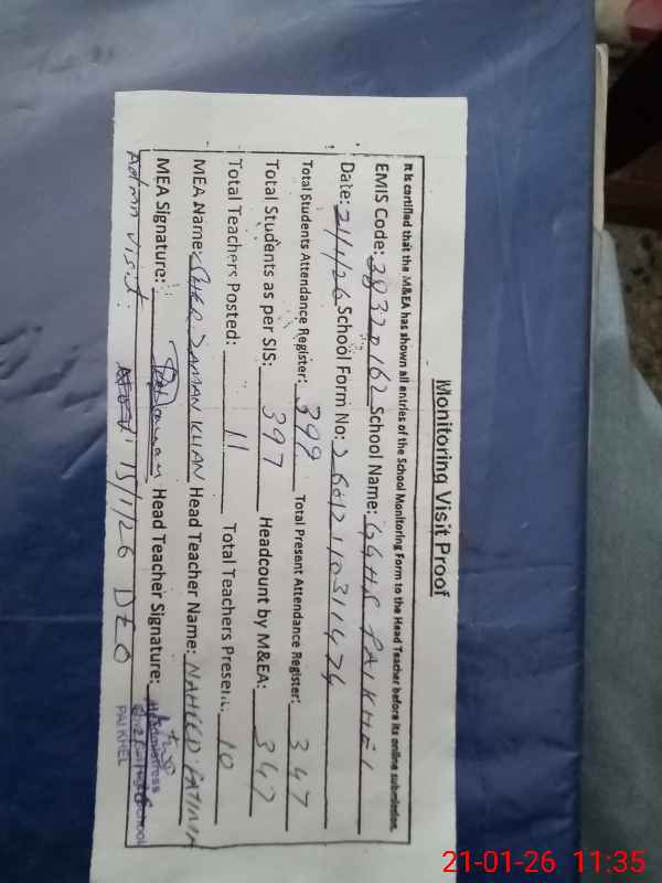 | EMIS Code: 38320162 | Name of School: GGHS PAI KHEL | |||