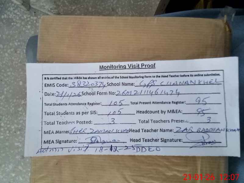 | EMIS Code: 38320374 | Name of School: GPS CHANAN KHEL | |||