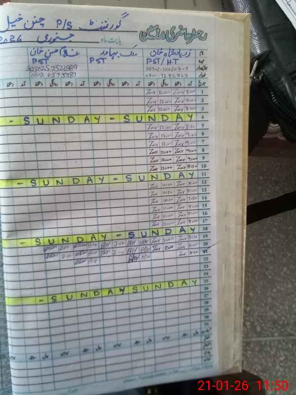 | Name: Za**** Ba**** Kh**** Designation: (School Headmaster's/Headmistress's) PST Phone/Cell Number: 03**** |