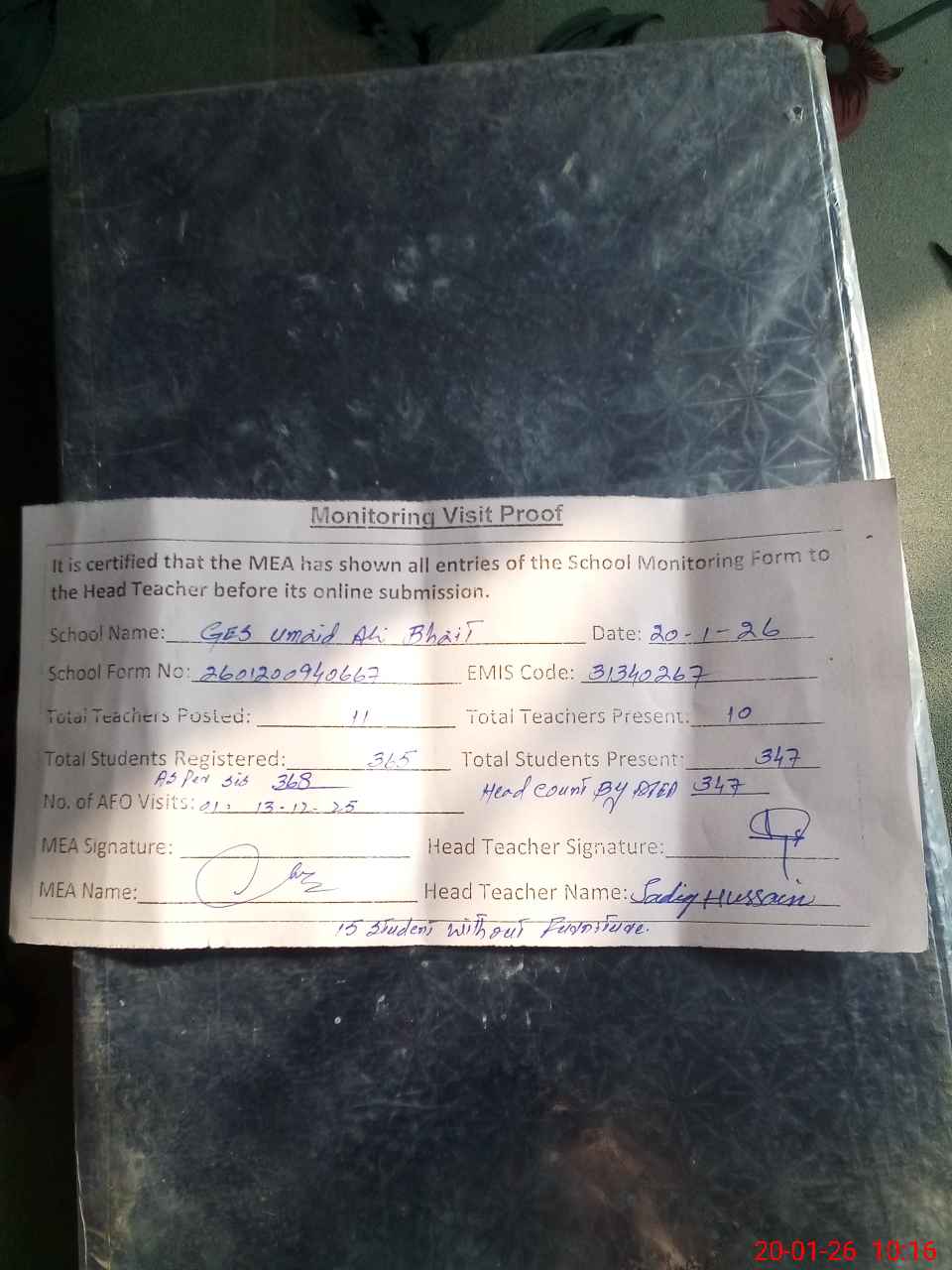 | EMIS Code: 31340267 | Name of School: GES UMAID ALI BHAIT | |||