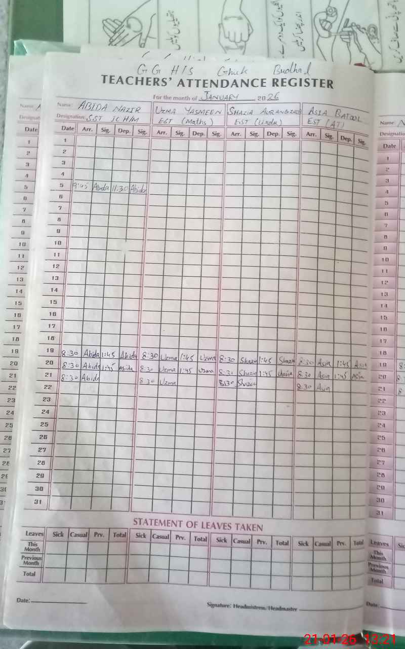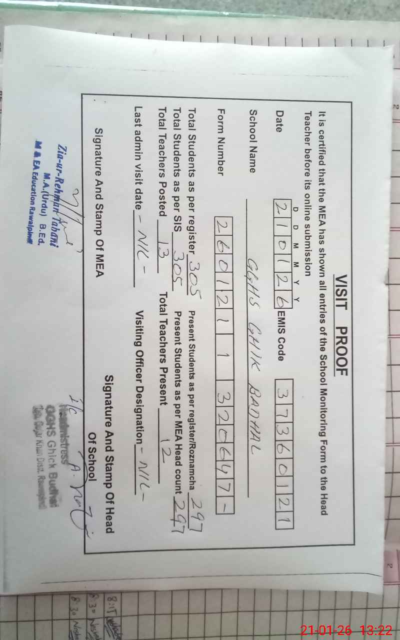 | EMIS Code: 37360121 | Name of School: GGHS GHIK BUDHAL | |||