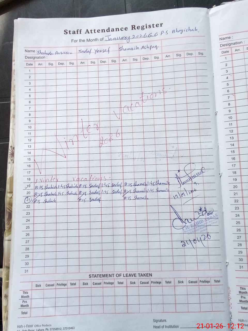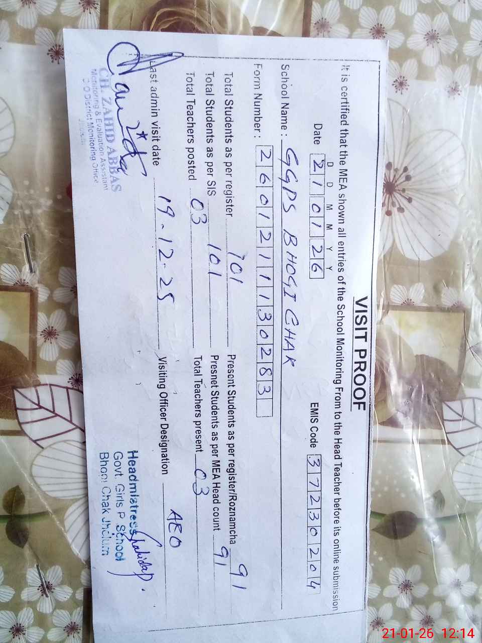 | EMIS Code: 37230204 | Name of School: GGPS BHOGGI CHAK | |||