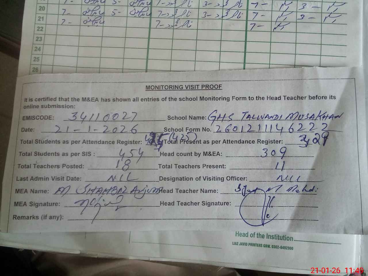 | EMIS Code: 34110027 | Name of School: GHS TALWANDI MUSA KHAN | |||