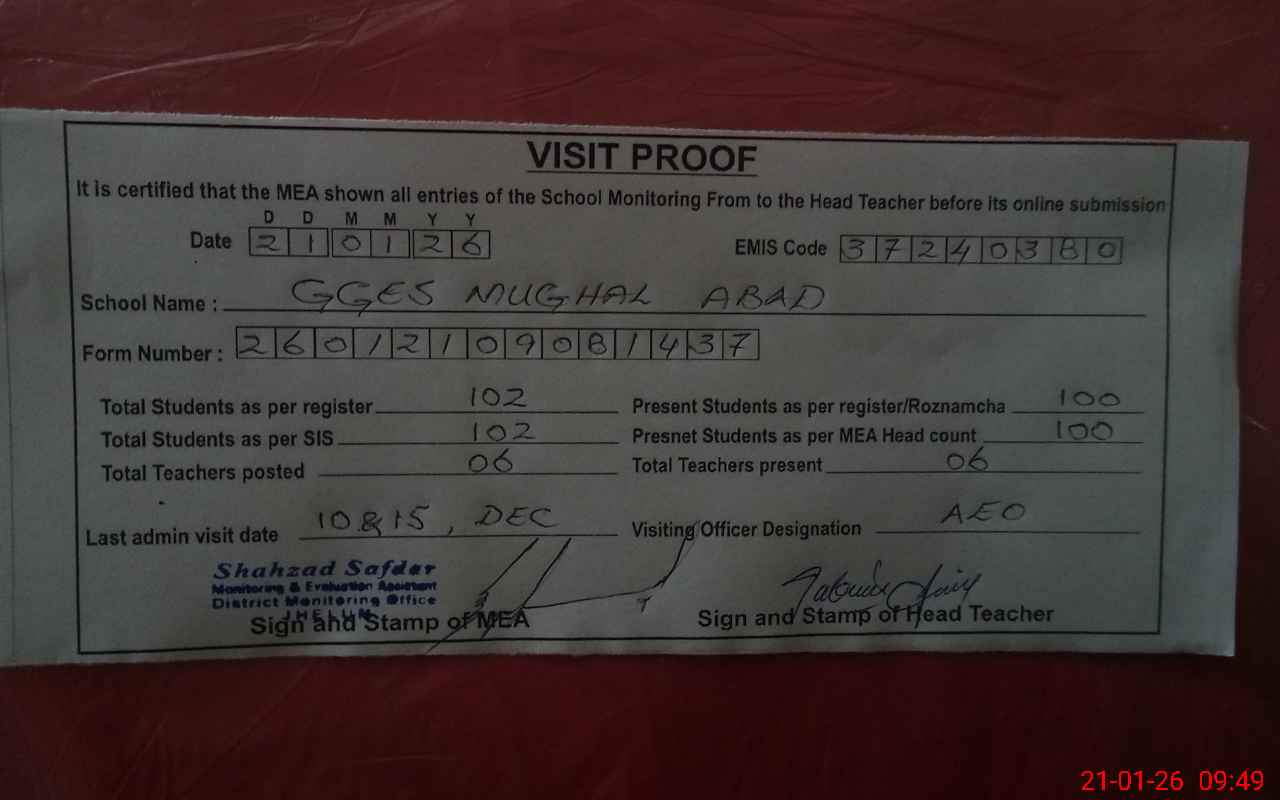 | EMIS Code: 37240380 | Name of School: GGES MUGHAL ABAD | |||