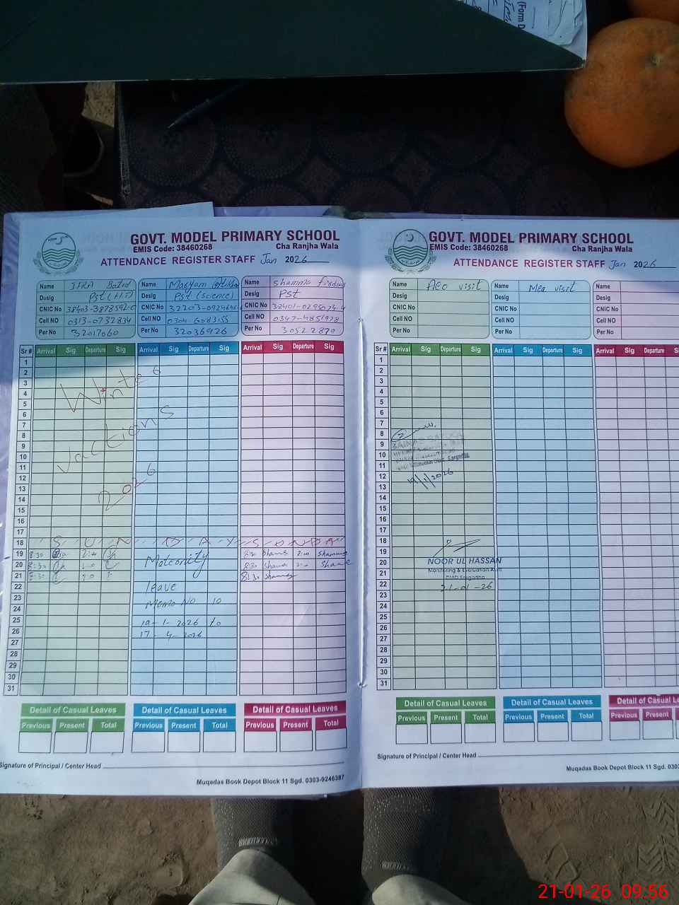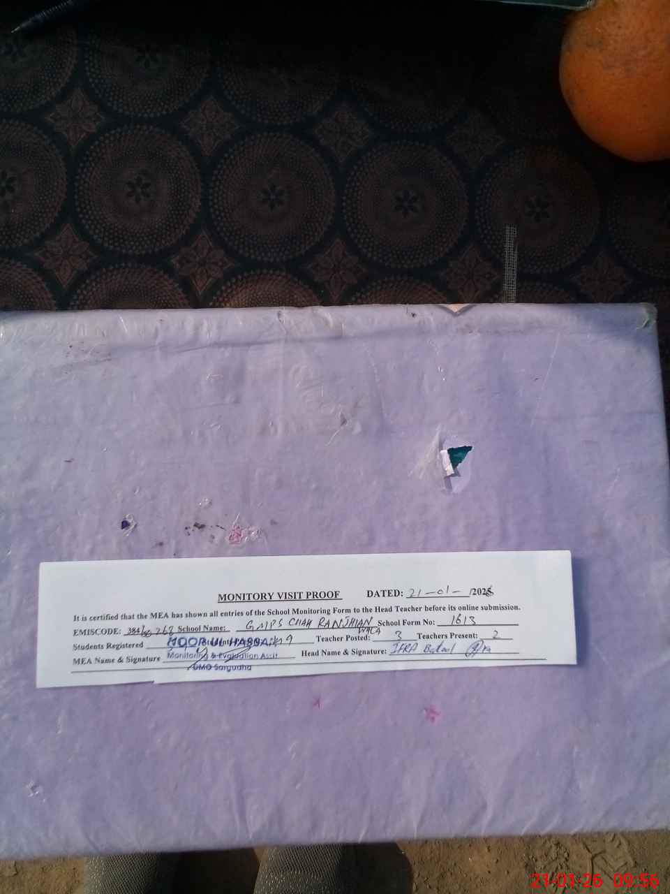 | Attendance Register | Head Teacher | MEA with School | Visit Proof |