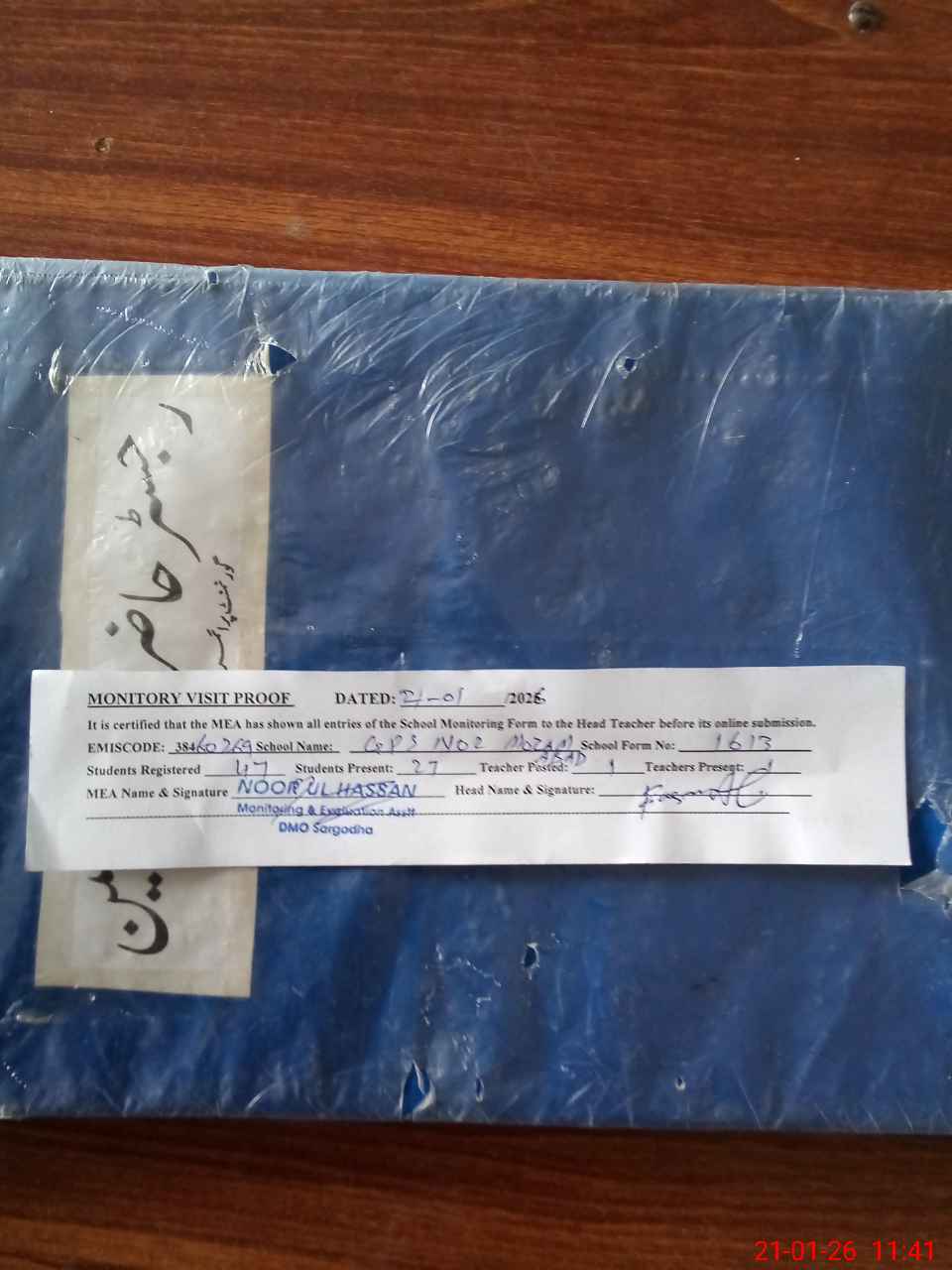 | Attendance Register | Head Teacher | MEA with School | Visit Proof |