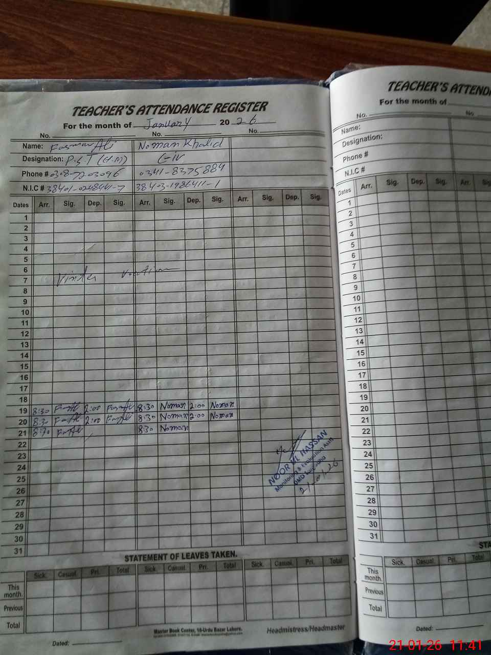 | Name: As**** Al**** Designation: (School Headmaster's/Headmistress's) PST Phone/Cell Number: 03**** |