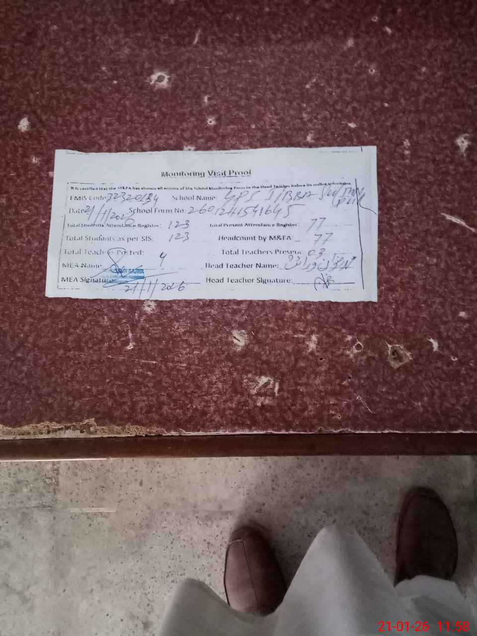 | EMIS Code: 32320134 | Name of School: GPS TIBBA SULTAN PUR | |||