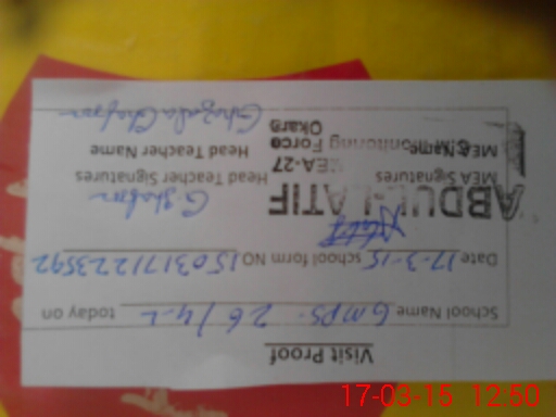 | Name: AR**** IQ**** Designation: (School Headmaster's/Headmistress's) PST Phone/Cell Number: 03**** |