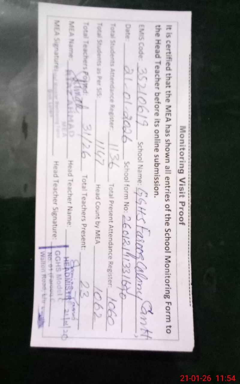 | EMIS Code: 35210619 | Name of School: GGHS FAROOQ COLONY (Newly upgraded) | |||