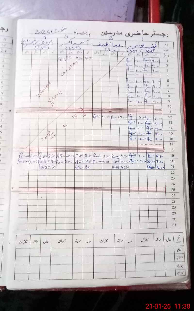 | 34**** | Zu**** Kh**** | PST Science/Maths | Regular | 31 | 0 | 0 | 31 | 0 | 0 | 0 | 0 | 0 | Maternity |