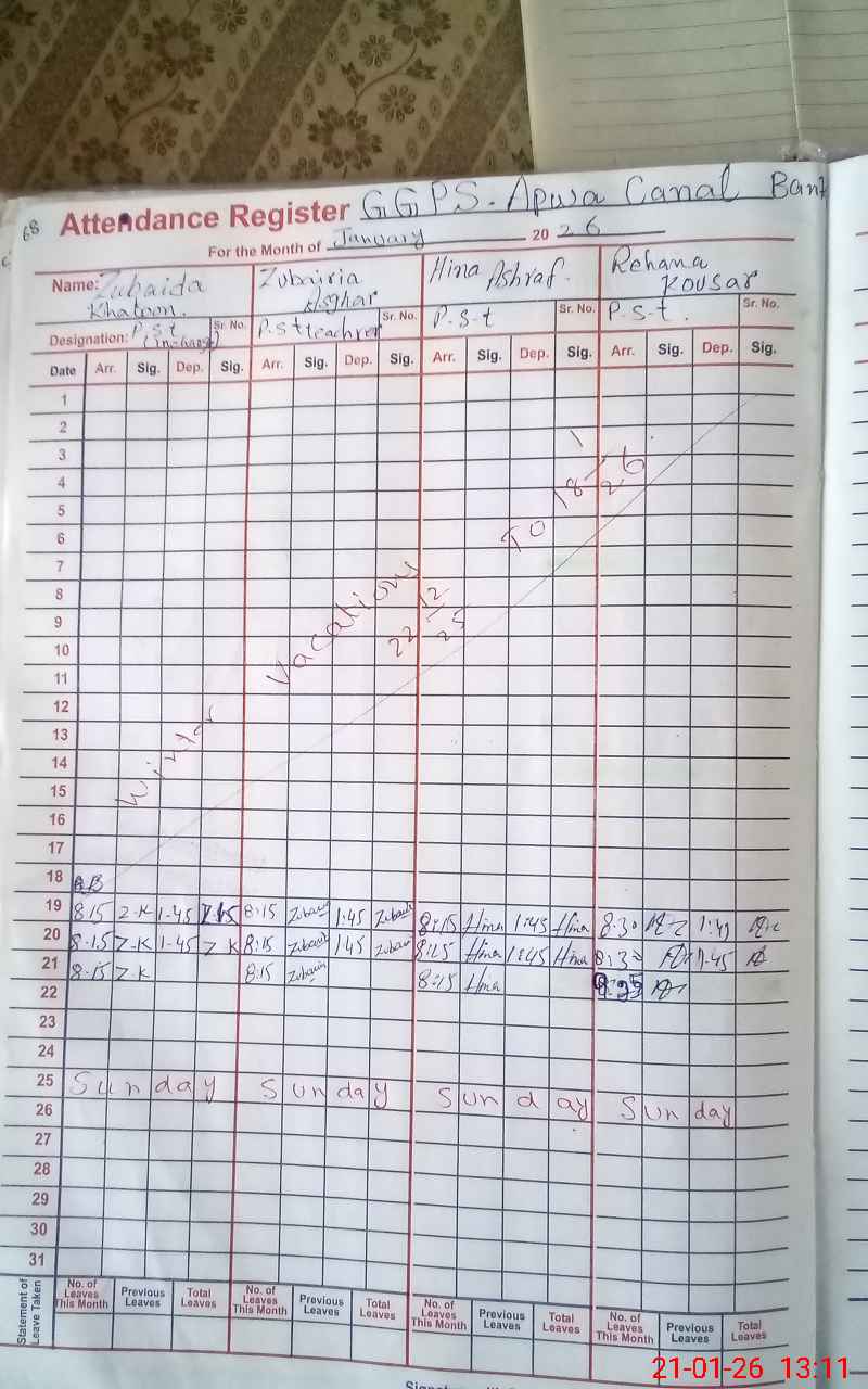 | Name: Zu**** Kh**** Designation: (School Headmaster's/Headmistress's) Head Mistress Phone/Cell Number: 03**** |