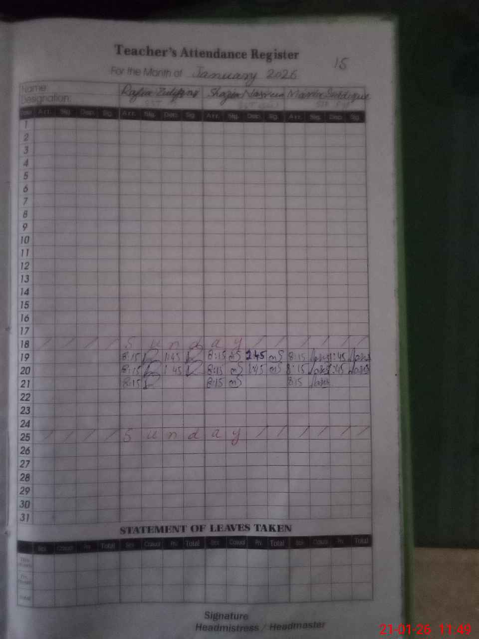 | 31**** | Sa**** Sh**** | PST Science/Maths | Regular | 1 | 0 | 0 | 0 | 0 | 0 | 0 | 0 | 1 | Casual |