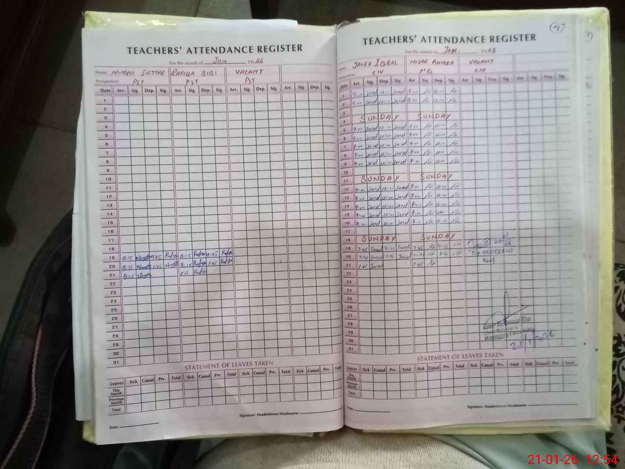 | Name: UM**** AS**** Designation: (School Headmaster's/Headmistress's) SST (G) Phone/Cell Number: 03**** |