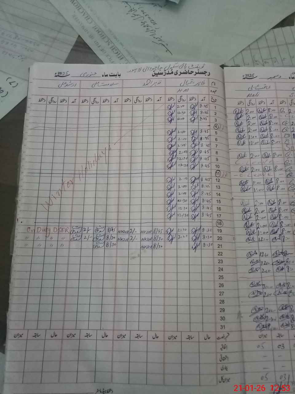 | CNIC | Full Name | Designation | R/C | Absence During Last Calender Month |