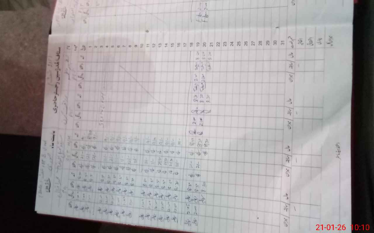 | CNIC | Full Name | Designation | R/C | Absence During Last Calender Month |