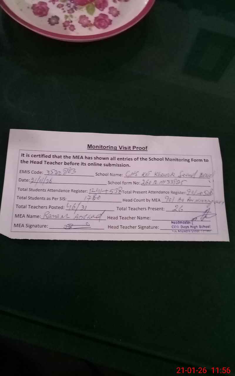 | EMIS Code: 35210883 | Name of School: GHS KOT KHAWAJA SAEED (EX-MCL) | |||