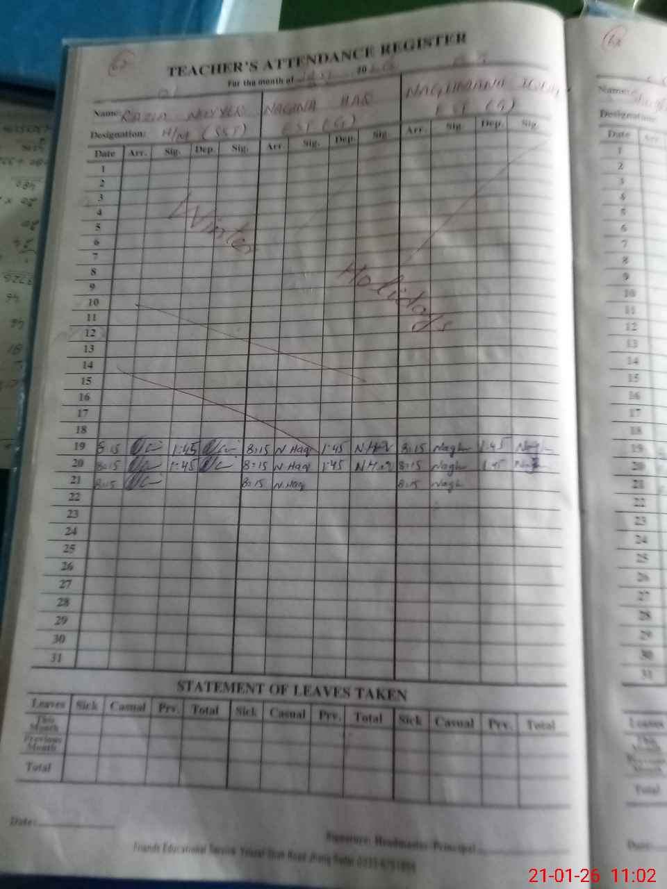 | Name: RA**** Na**** Designation: (School Headmaster's/Headmistress's) S.S.T.GEN Phone/Cell Number: 03**** |