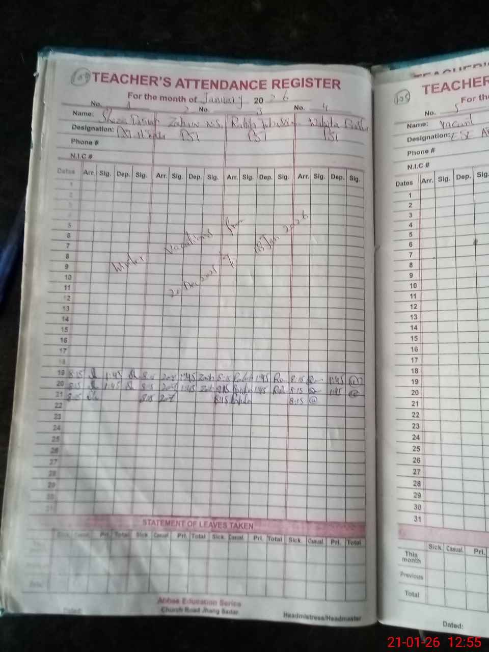 | Name: Sh**** Pe**** Designation: (School Headmaster's/Headmistress's) PST Phone/Cell Number: 03**** |