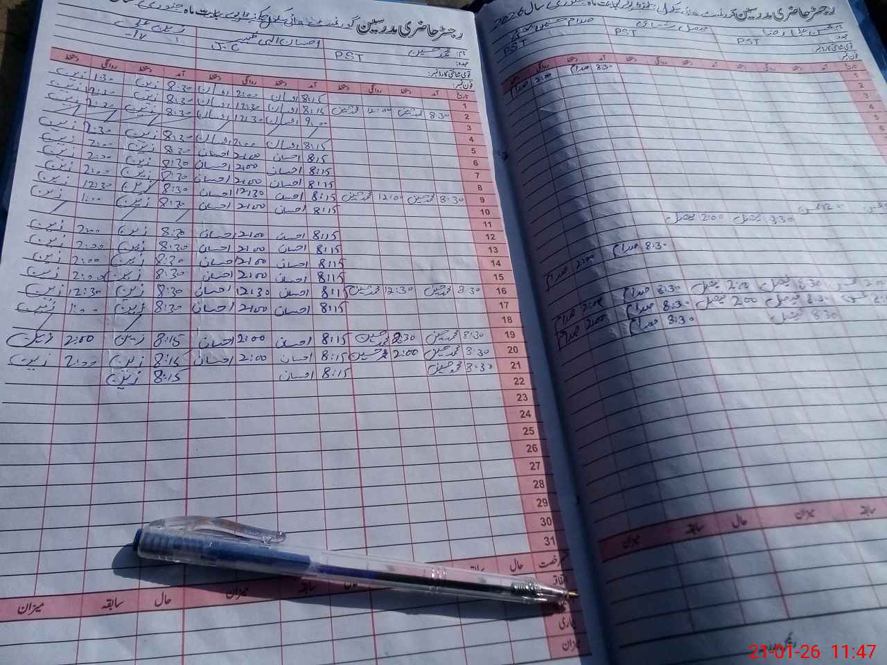 | CNIC | Full Name | Designation | R/C | Absence During Last Calender Month |