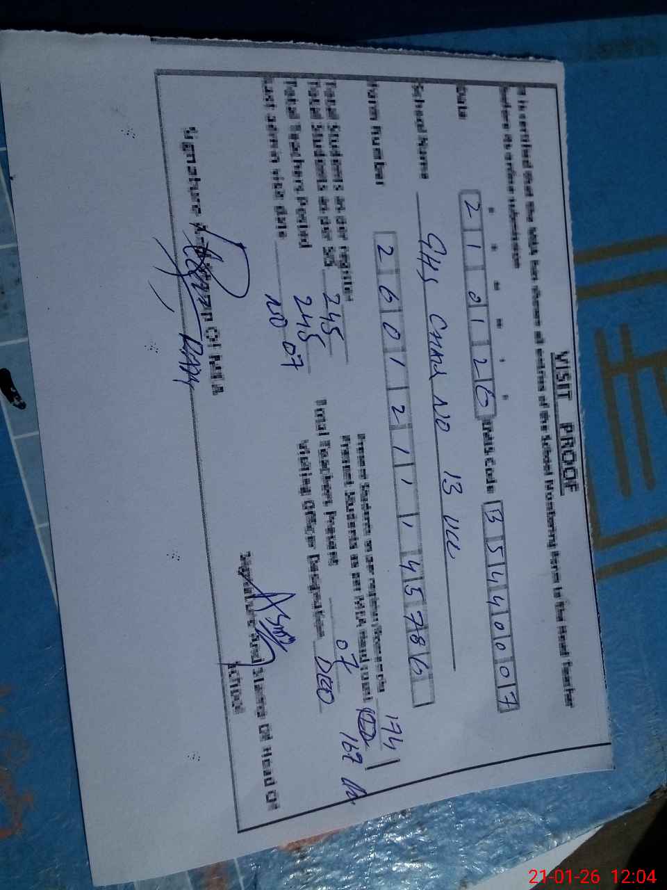 | Attendance Register | Head Teacher | MEA with School | Visit Proof |
