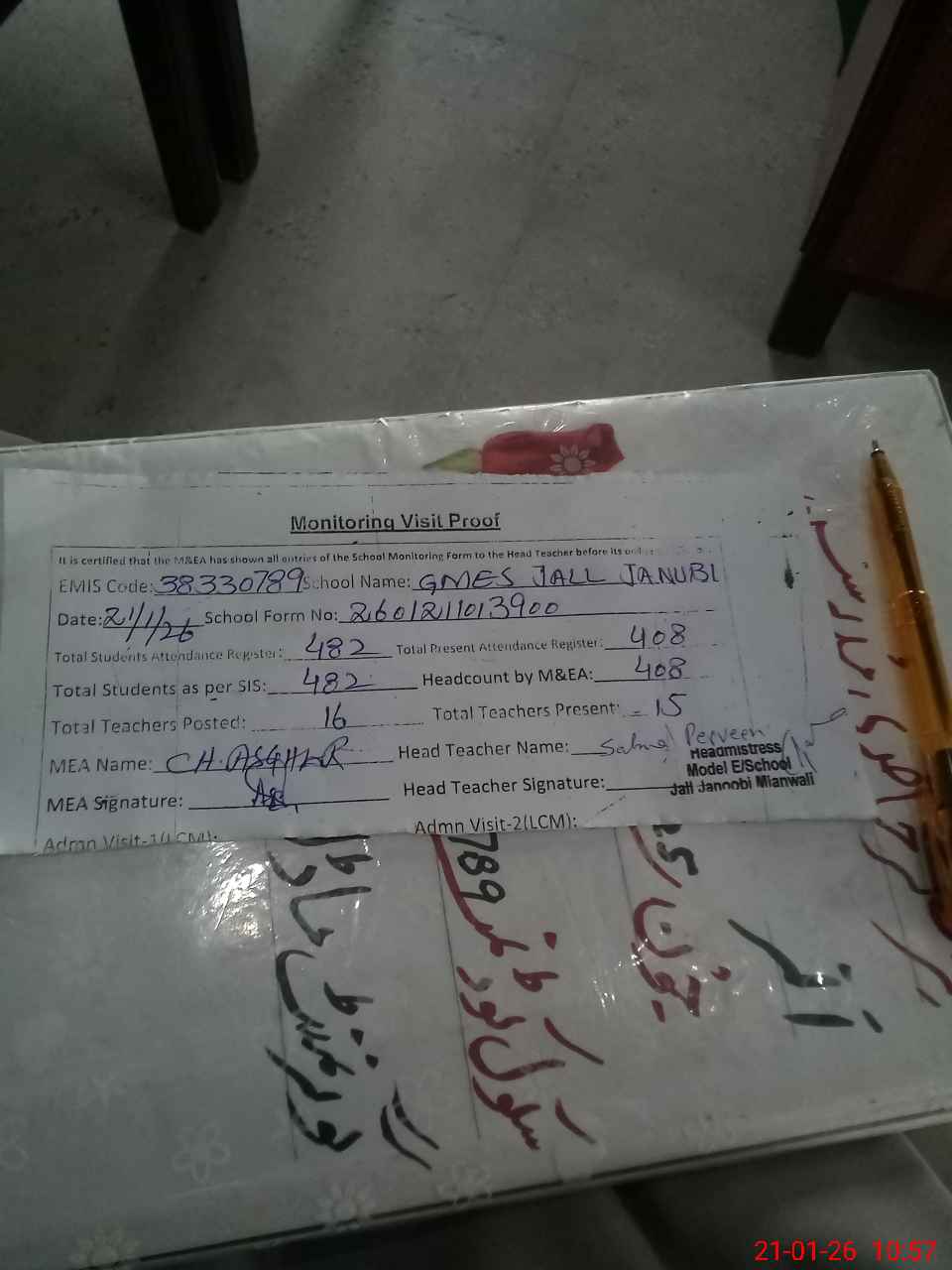 | Certified that this School was Inspected by the Undersigned MEA/DMO Today and the Information Stated Above is as Per Record. | |||||