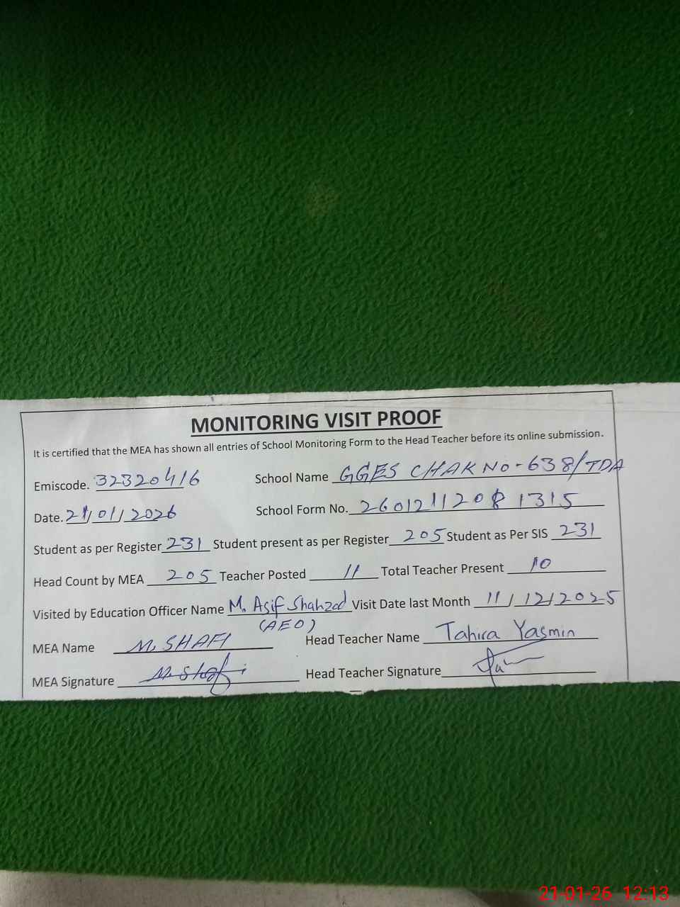 | EMIS Code: 32320416 | Name of School: GGES CHAK NO. 638 TDA | |||