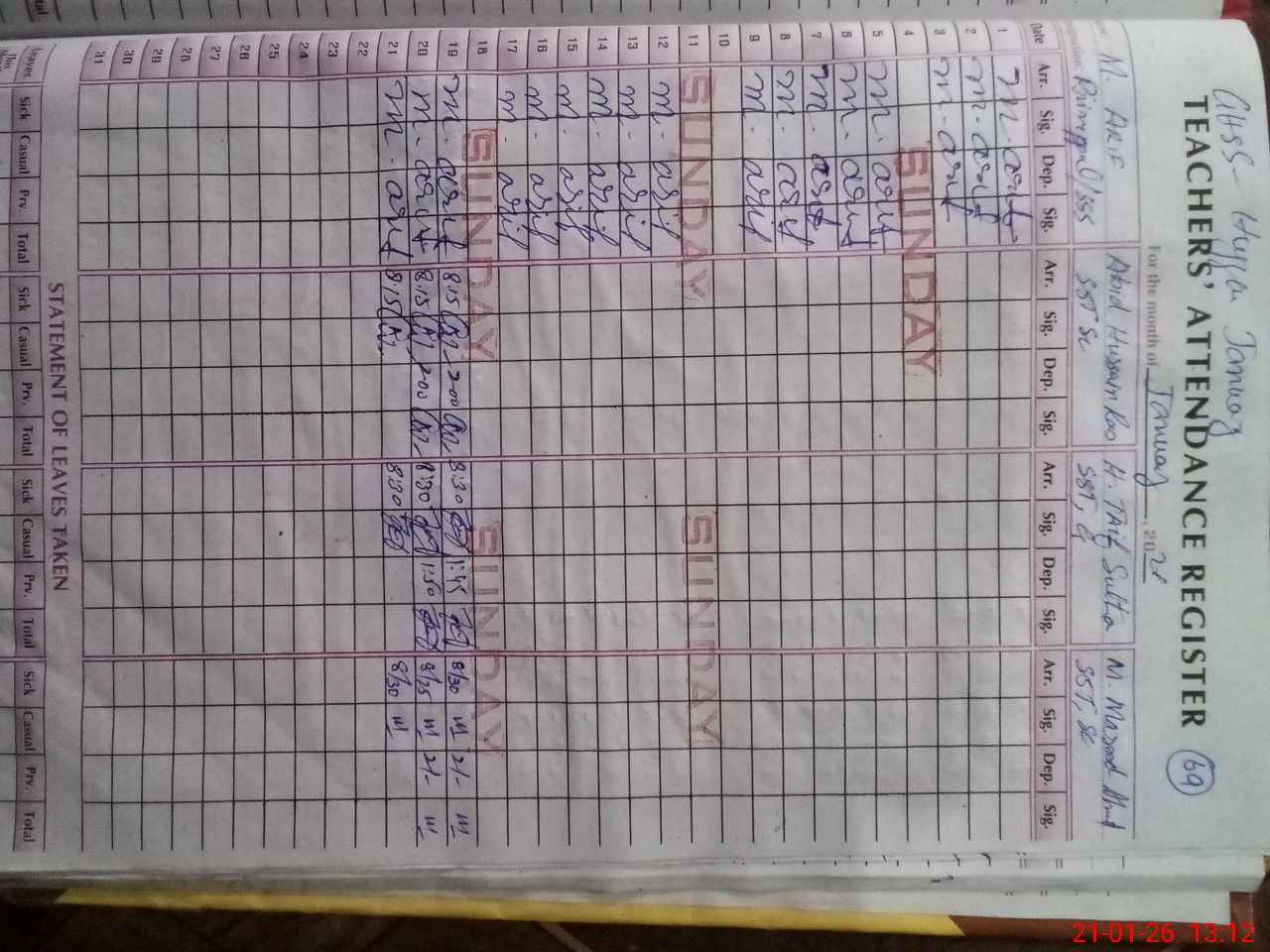 | CNIC | Full Name | Designation | R/C | Absence During Last Calender Month |