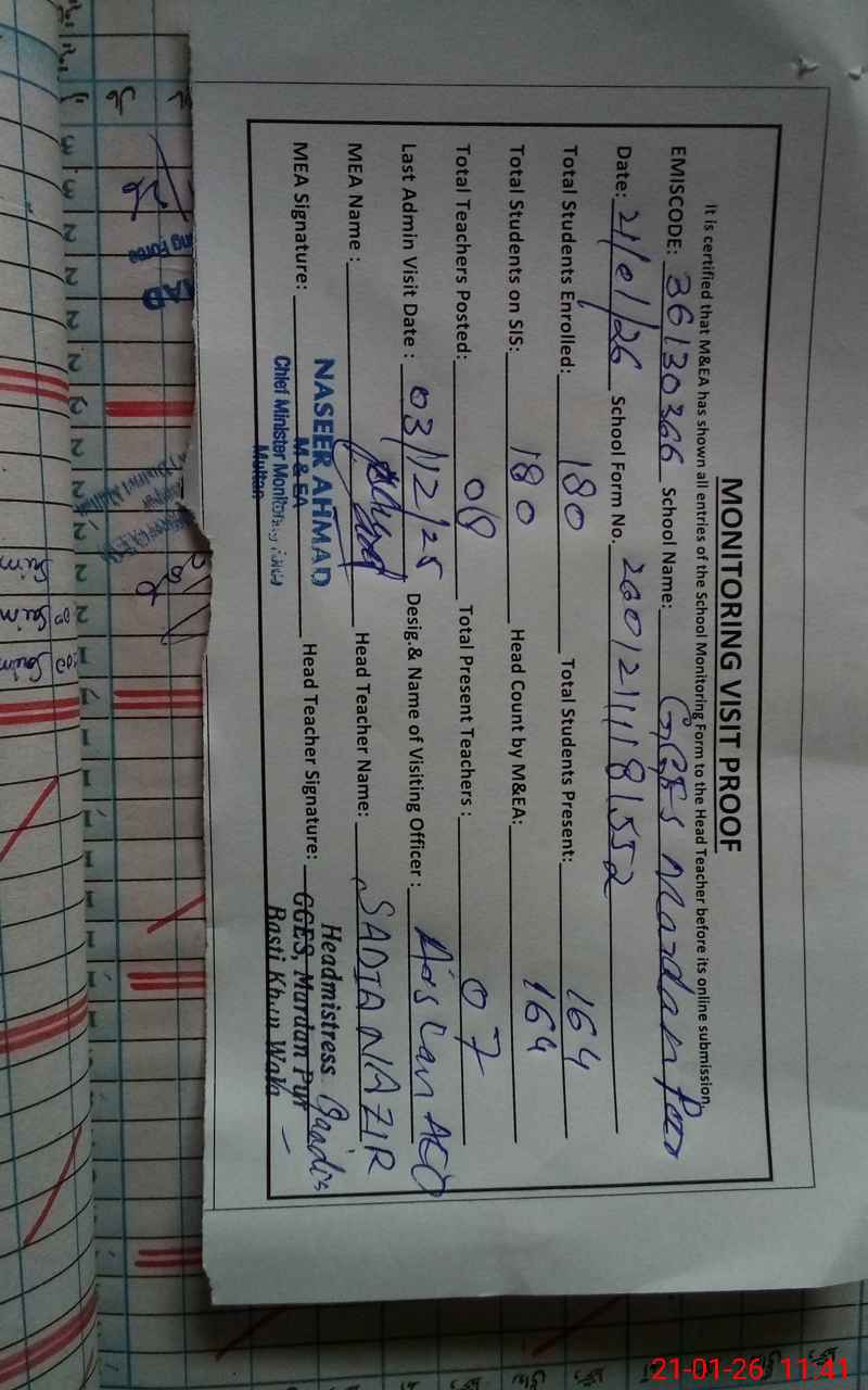 | EMIS Code: 36130366 | Name of School: GGES MARDAN PUR NEAR BASTI KHAN WALA MULTAN | |||