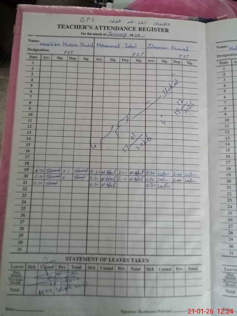 | Name: Mu**** Hu**** Sh**** Designation: (School Headmaster's/Headmistress's) PST Phone/Cell Number: 03**** |