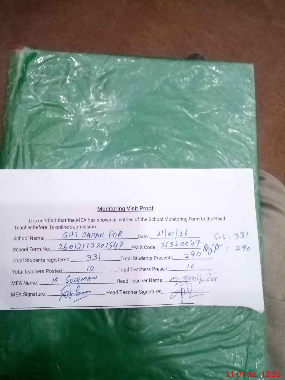| EMIS Code: 36320047 | Name of School: GHS JAHAN PUR | |||
