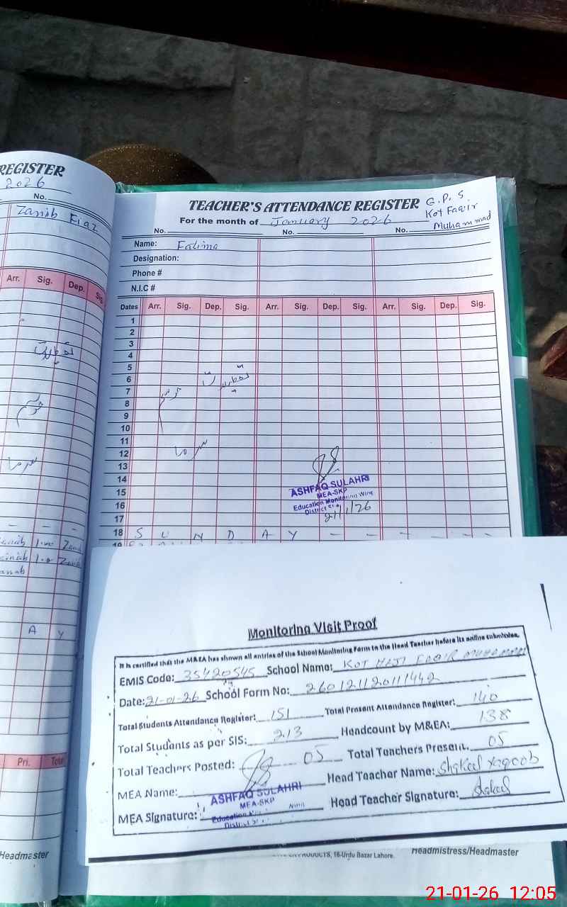 | EMIS Code: 35420545 | Name of School: GPS KOT HAJI FAQIR MUHAMMAD | |||