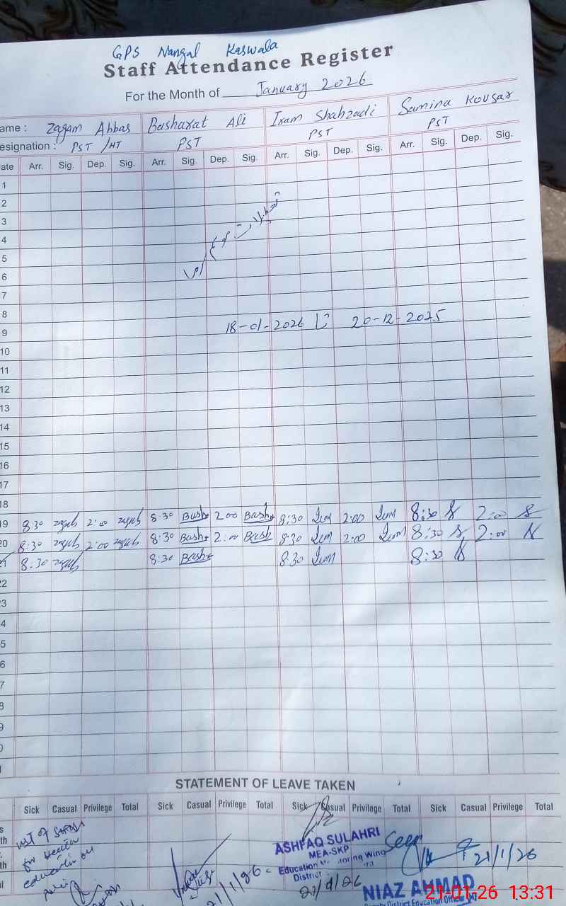| EMIS Code: 35420246 | Name of School: GPS NANGAL KAS WAL | |||