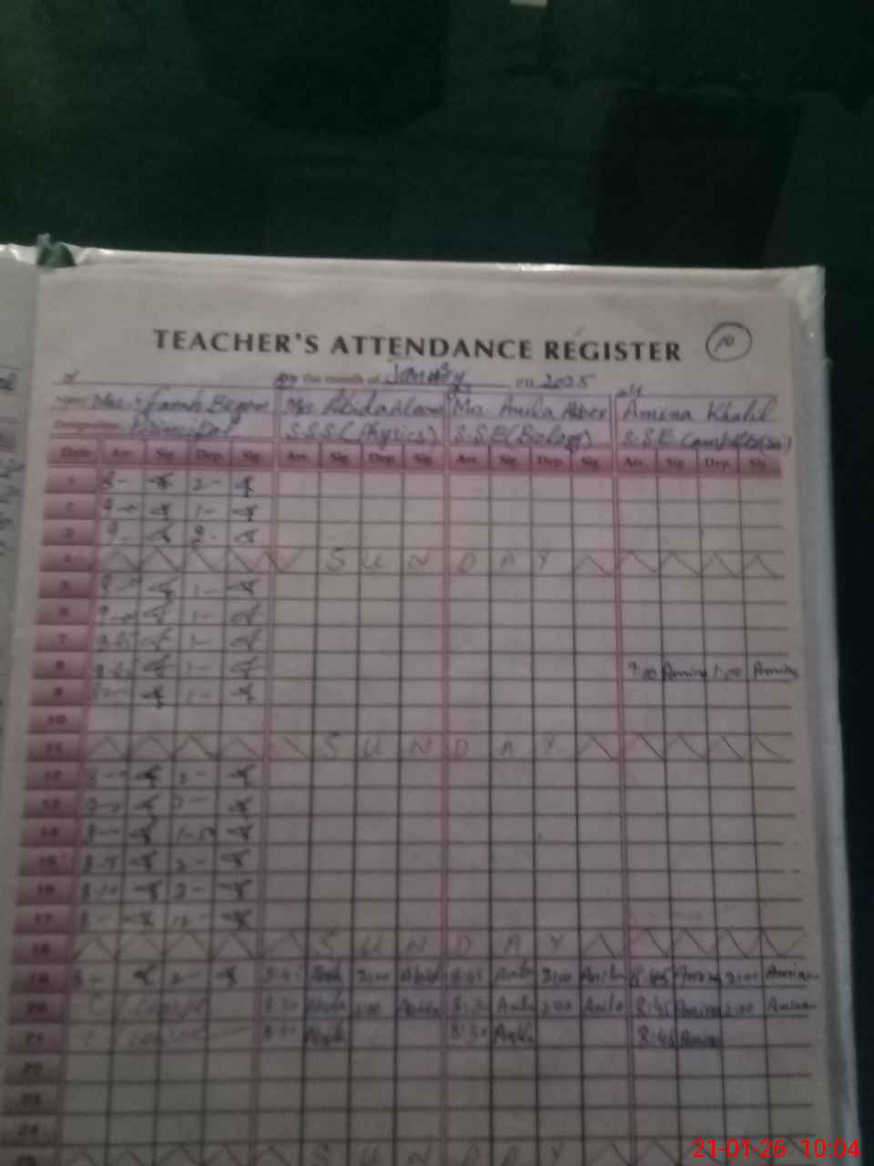 | 35**** | Fa**** Be**** | PRINCIPAL | Regular | 2 | 0 | 0 | 0 | 0 | 0 | 0 | 0 | 2 | Casual |