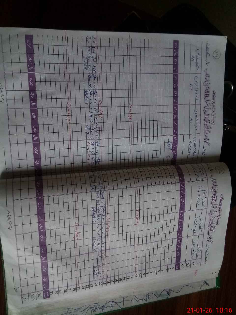 | CNIC | Full Name | Designation | R/C | Absence During Last Calender Month |
