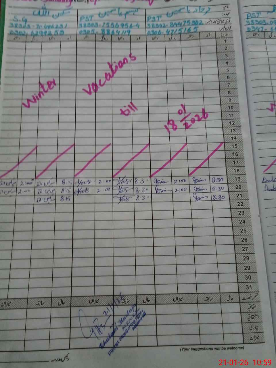 | Name: MA**** JA**** Designation: (School Headmaster's/Headmistress's) PST Phone/Cell Number: 03**** |