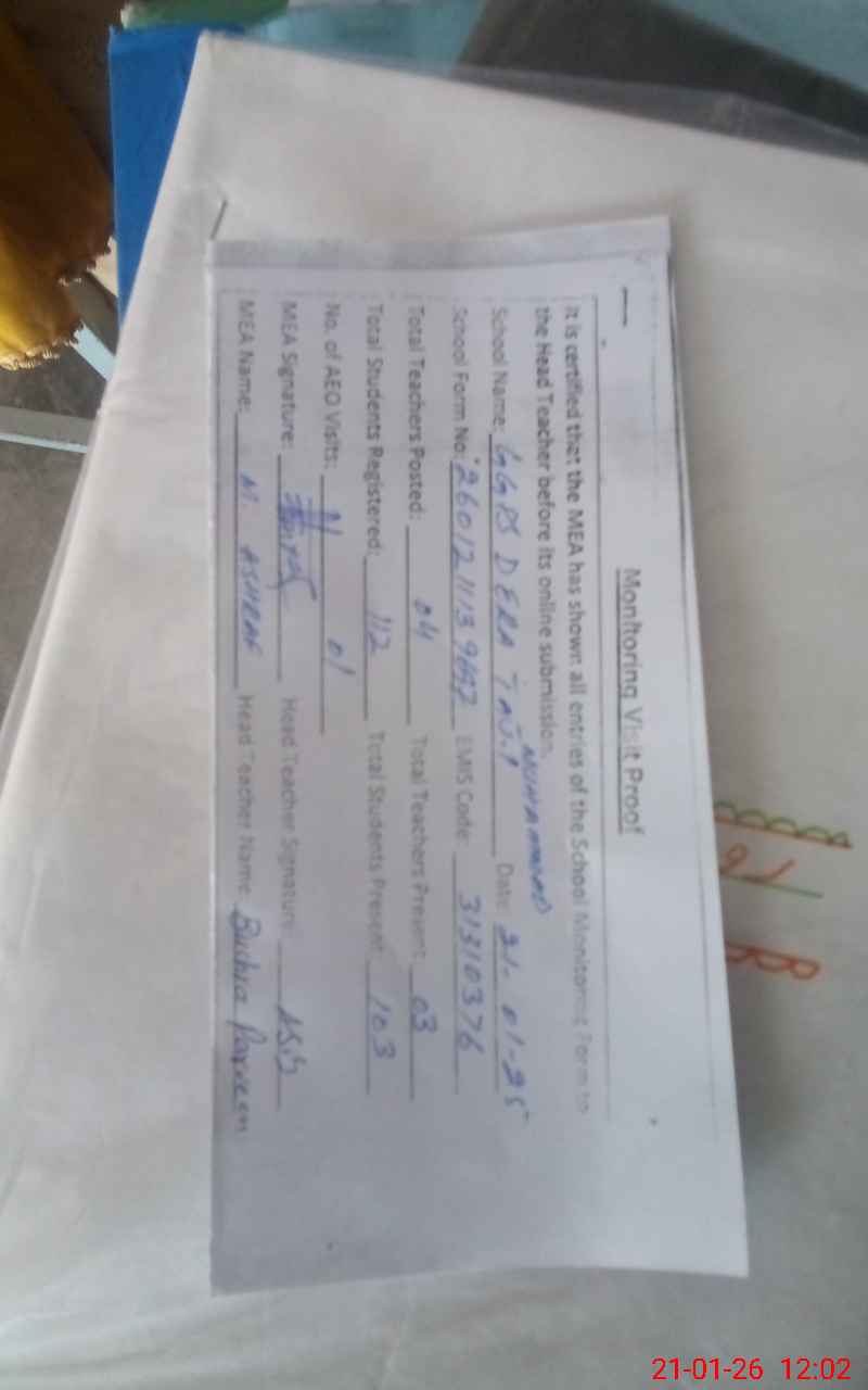 | EMIS Code: 31310376 | Name of School: GGPS DERA TAJ MUHAMMAD | |||
