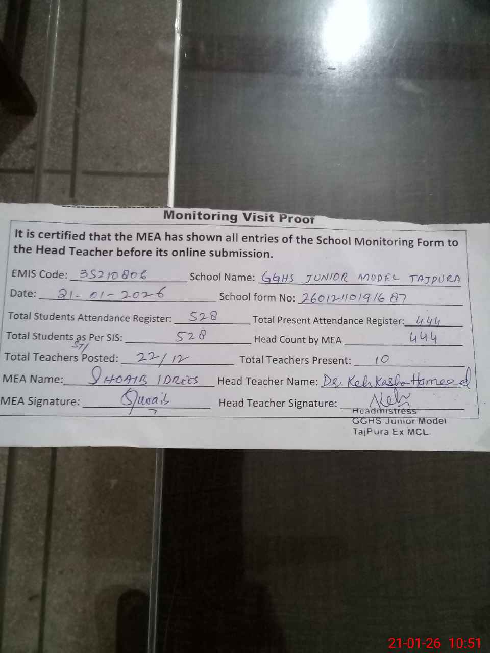 | EMIS Code: 35210806 | Name of School: GGHS JUNIOR MODEL TAJPURA EX-MCL (Newly upgraded) | |||