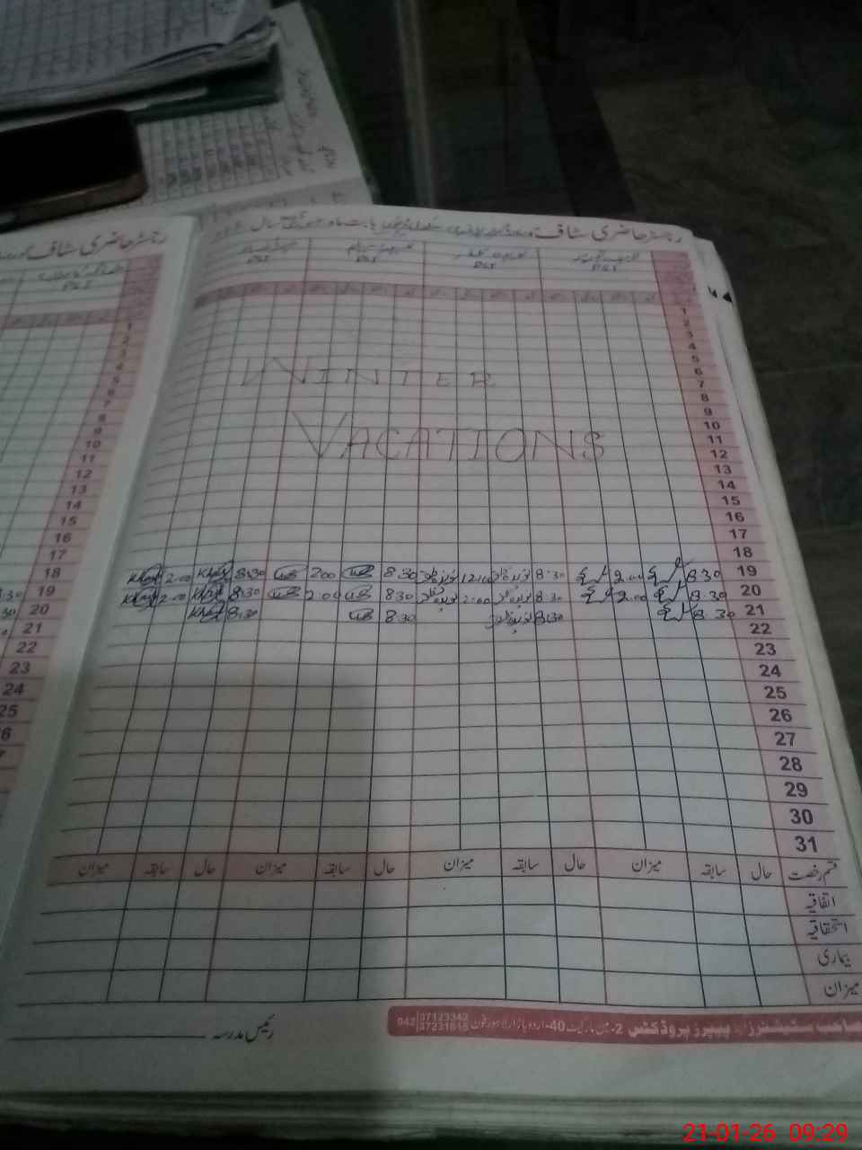| CNIC | Full Name | Designation | R/C | Absence During Last Calender Month |