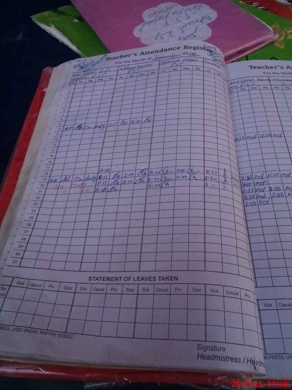 | Leave | Duty | Absent | Maternity | Medical | Ex- Pak |