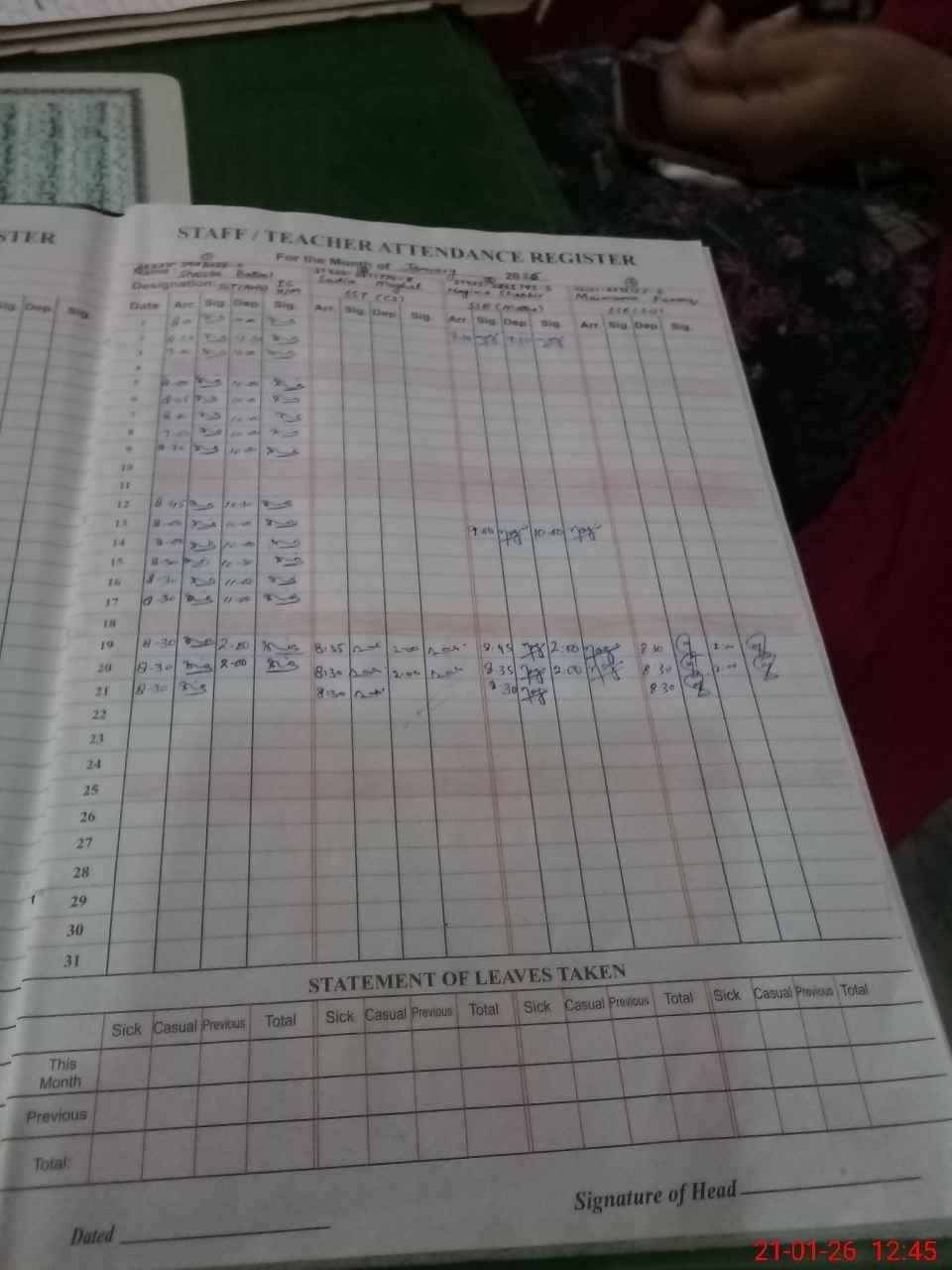 | Name: Sh**** Ba**** Designation: (School Headmaster's/Headmistress's) SST Phone/Cell Number: 03**** |