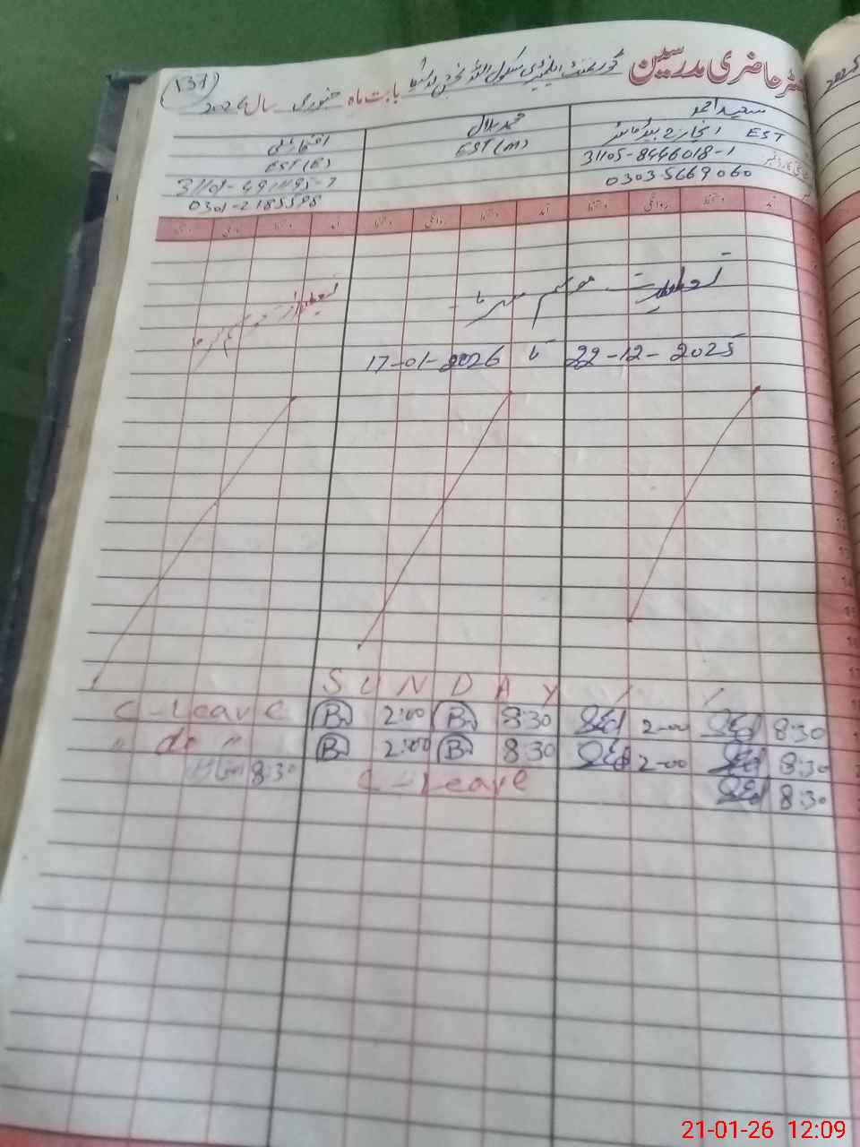 | CNIC | Full Name | Designation | R/C | Absence During Last Calender Month |