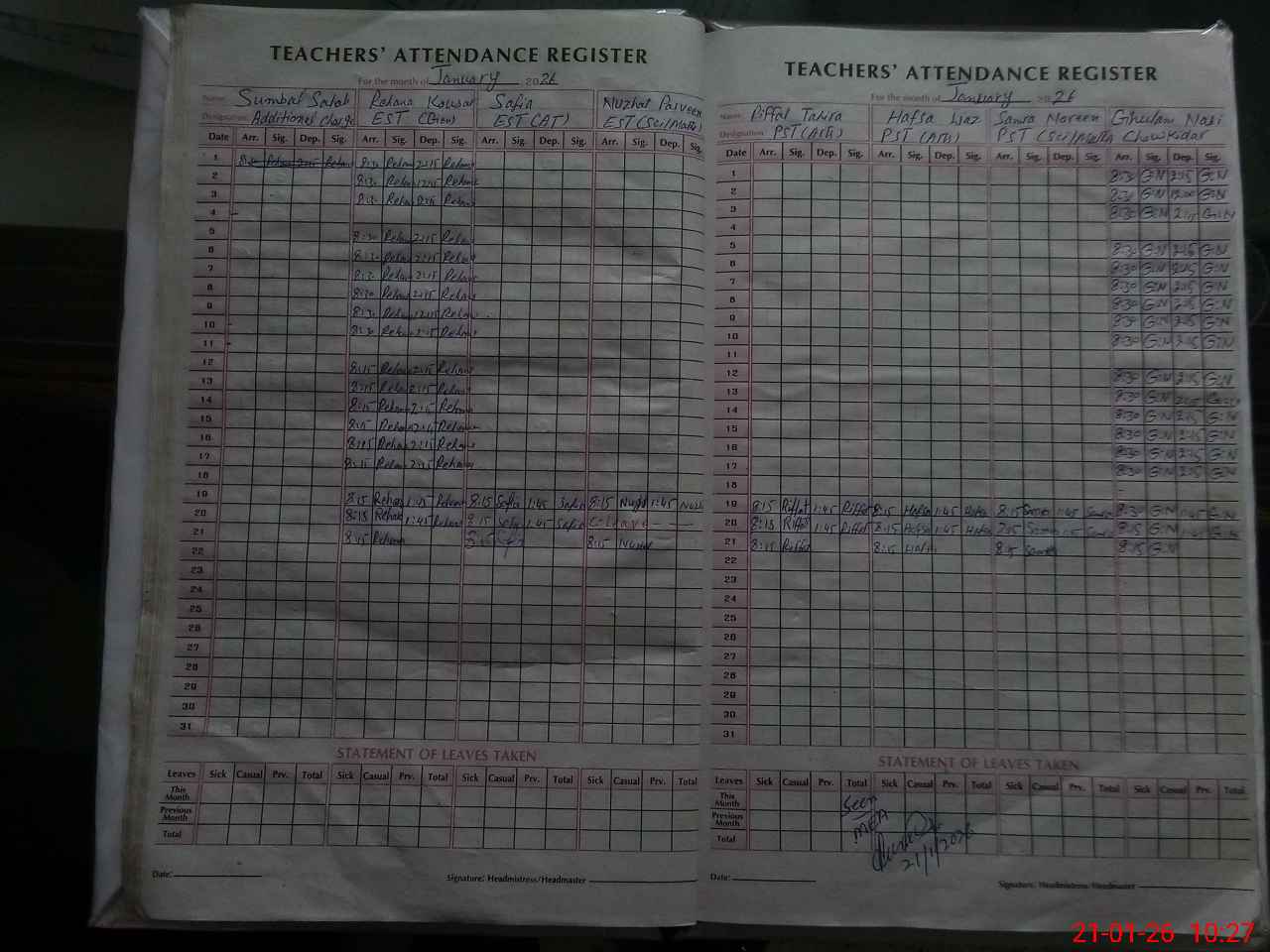 | Name: Re**** Ka**** Designation: (School Headmaster's/Headmistress's) EST Phone/Cell Number: 03**** |