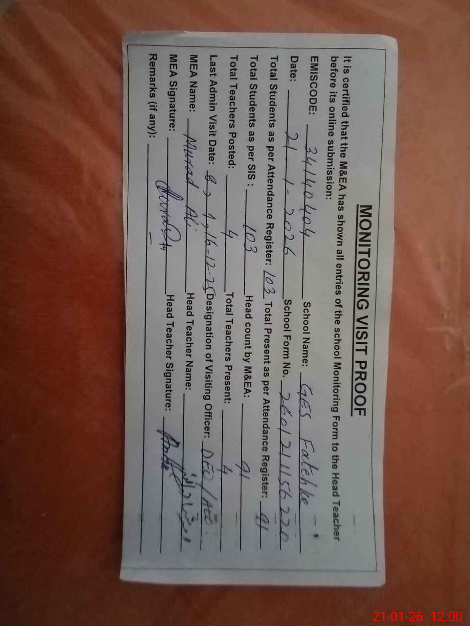 | EMIS Code: 34140404 | Name of School: GES FATEH KE | |||
