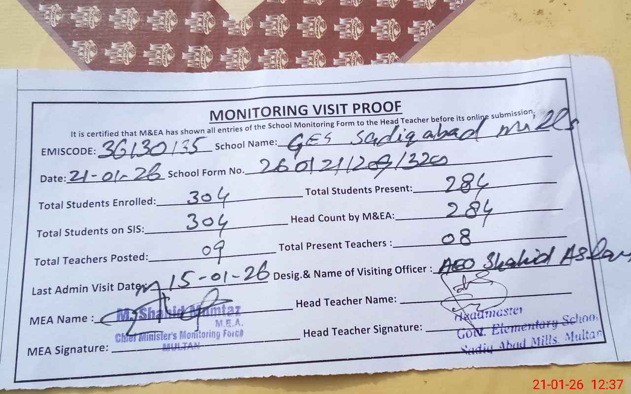 | EMIS Code: 36130135 | Name of School: GES SADIQ ABAD MILLS MOZA SHAKH MADINA | |||